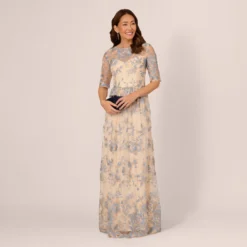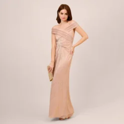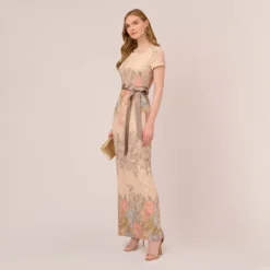 Adrianna Papell Art Deco Beaded Blouson Gown In Blush