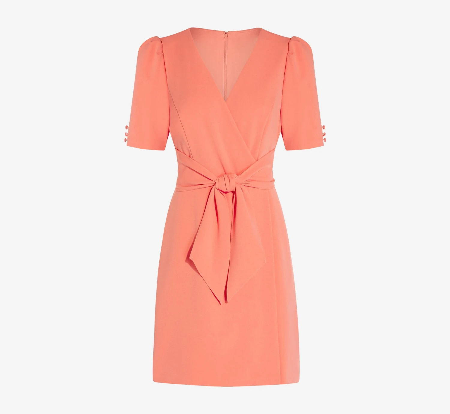 Sophisticated and on point, our wrap-style dress is made in a lightweight and smooth stretch knit crepe and features an oversized self-tie belt (so flattering) and modern elbow sleeves. Sleek back zip closure. Perfect for brunch, bridal showers, cocktail hours and dinner dates.