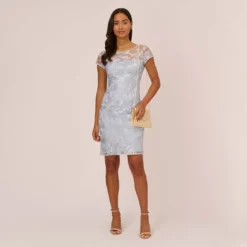 Up your glamour game in our stunning gown crafted of a delicate point d’esprit lace and embellished with stunning handsewn 3D beadwork in a floral pattern. Details with love: the sheer illusion yoke and flutter sleeves, sweetheart neckline and soft pleating at the waist for added movement and sway. Back zip closure. A romantic choice for mothers-of-the-bride/groom, bridal parties, wedding guests and black-tie gala attendees.