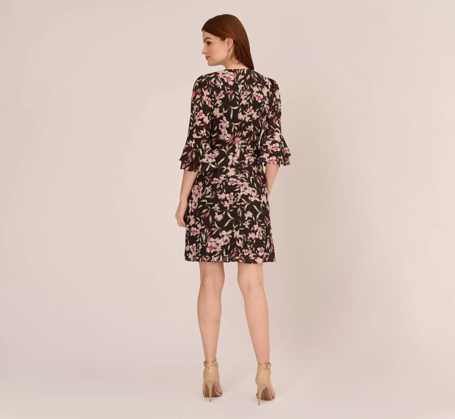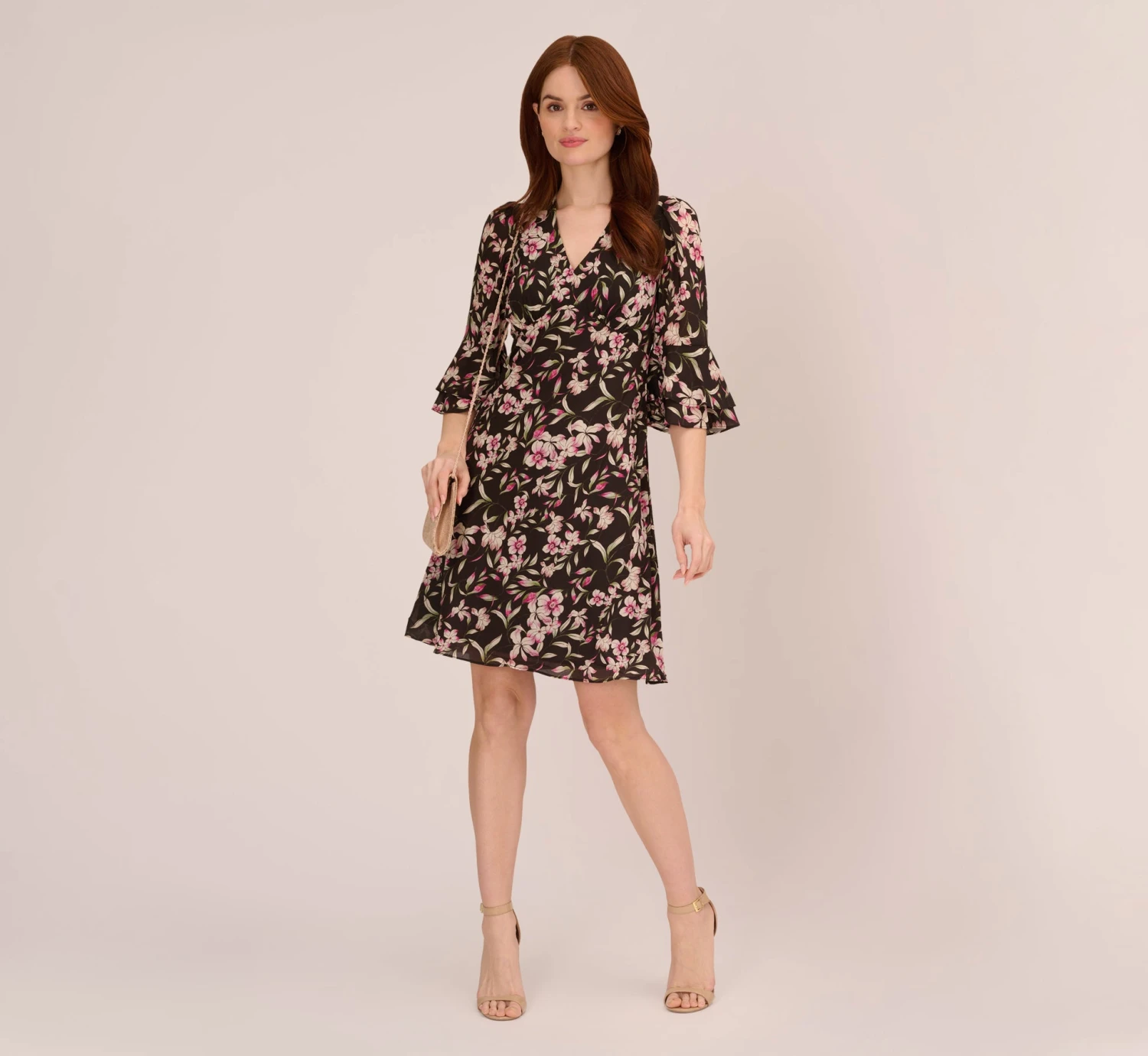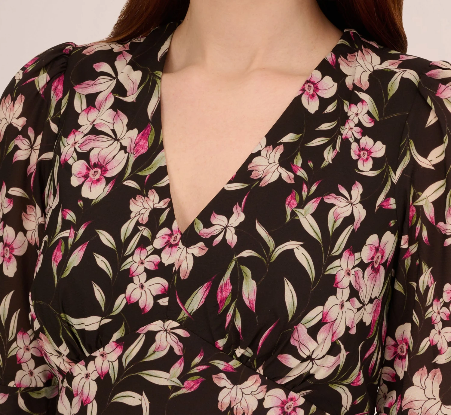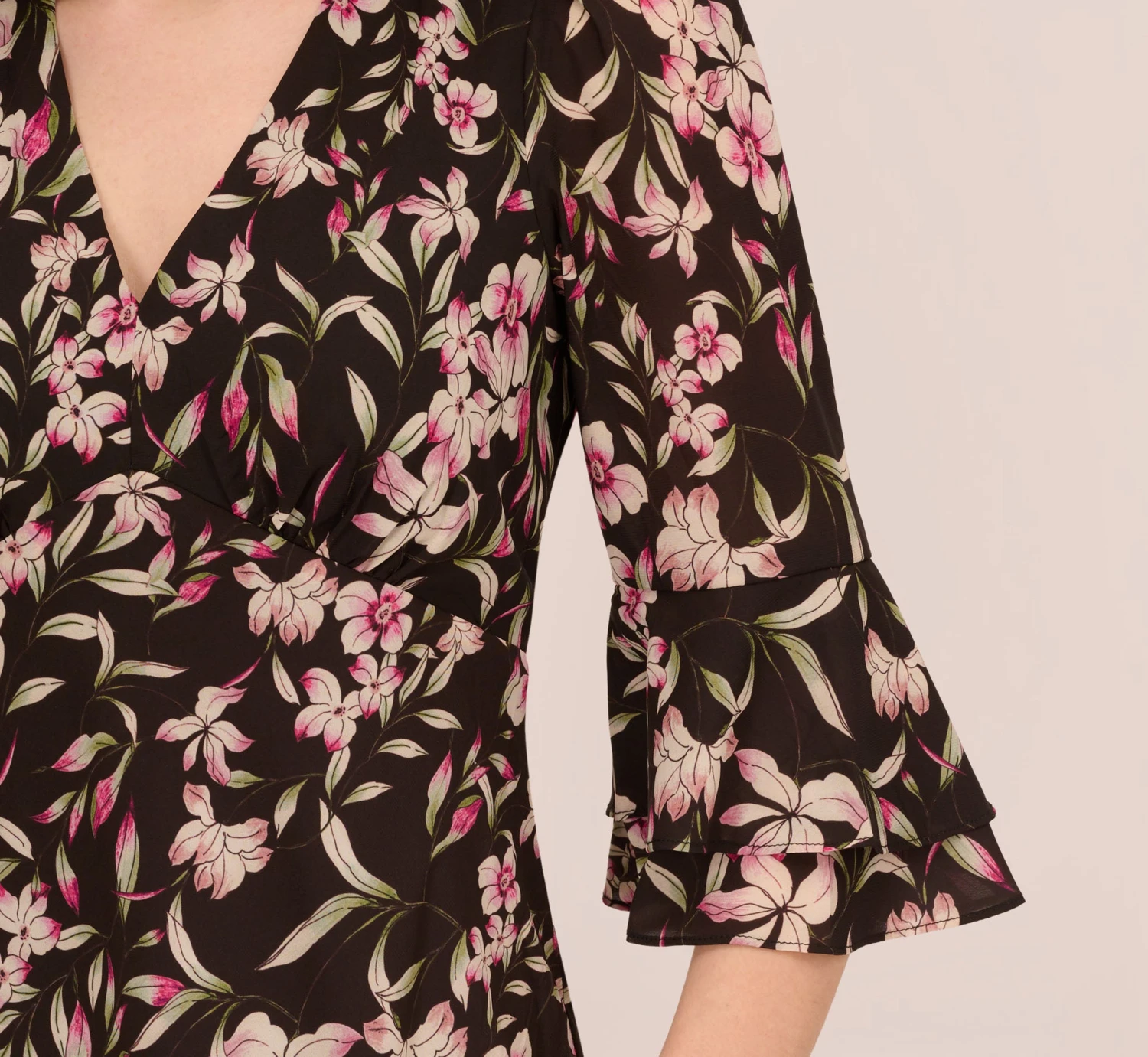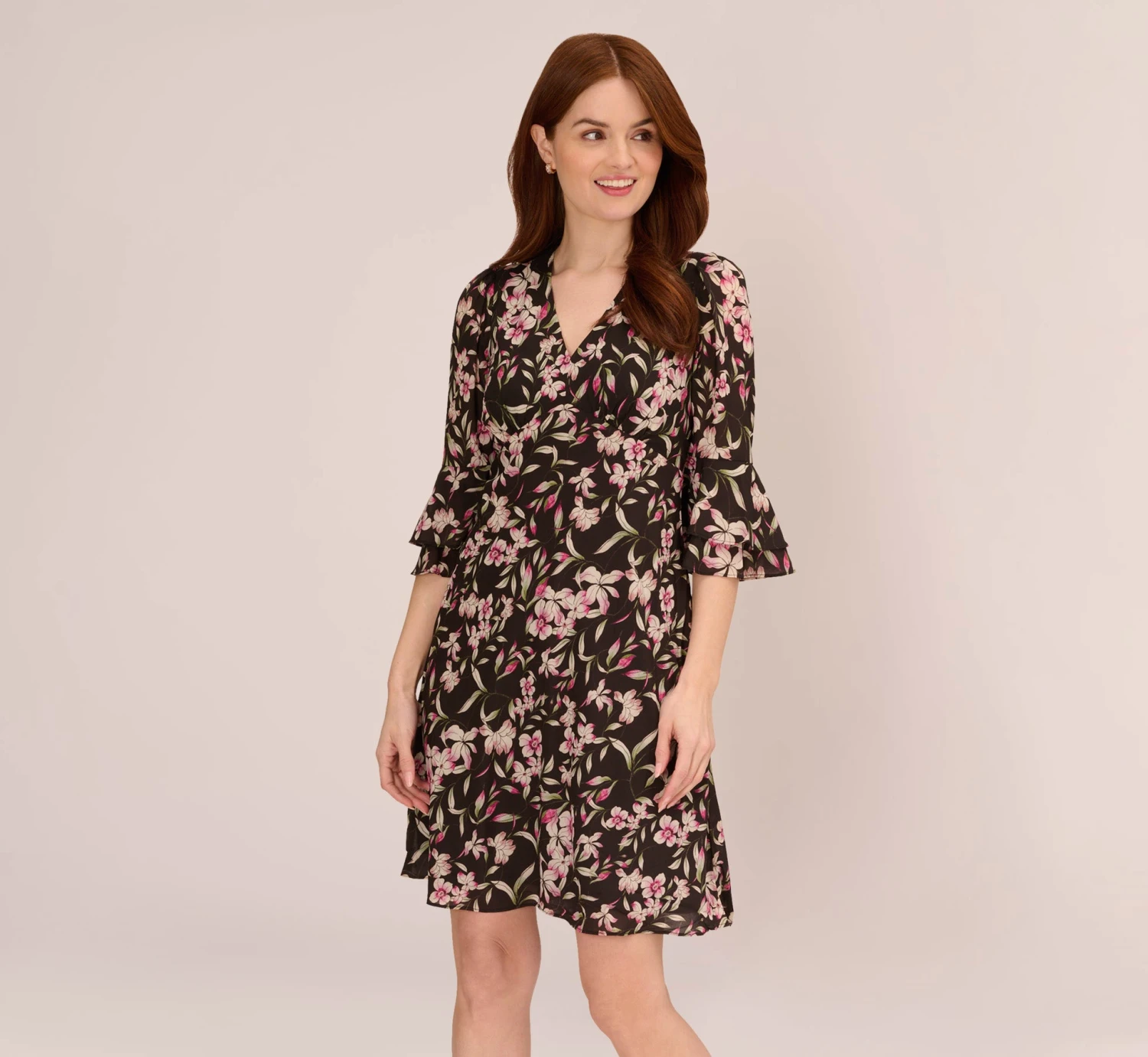 Timeless and trending: our romantic floral print chiffon dress is designed with an empire waist that floats from day to night. Details we love: the flattering v-neckline and playful elbow sleeves with bell cuffs.