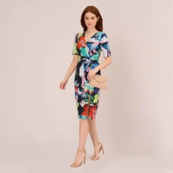Flirty and feminine, this satin dress features a v-neckline, flutter sleeves, flattering empire waist, and slit skirt. Crafted from hammered satin that has a crinkled look, this floral print dress sweetly shines. A zipper closure at the back completes the design. Your favorite heels and a clutch is allthis dress needs to go from day to date night.