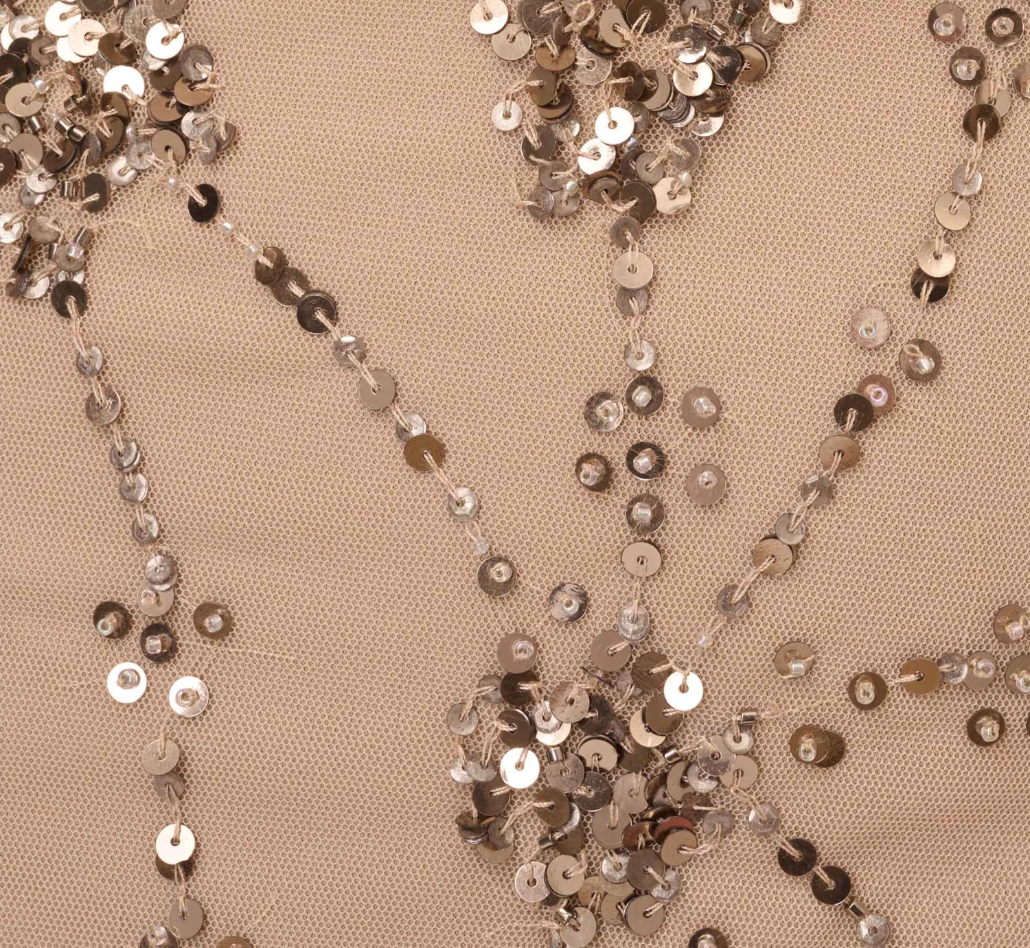 A Grecian style gown is alight with patterns of metallic beads and sequins, finished with wispy godets.This Adrianna Papell design has been made from the finest and most luxurious fabrics. All bead work, embroidery and ornamentation has been done completely by hand. Slight irregularities or variations should not be regarded as defective or damaged, rather a testament to the garment’s unique beauty.