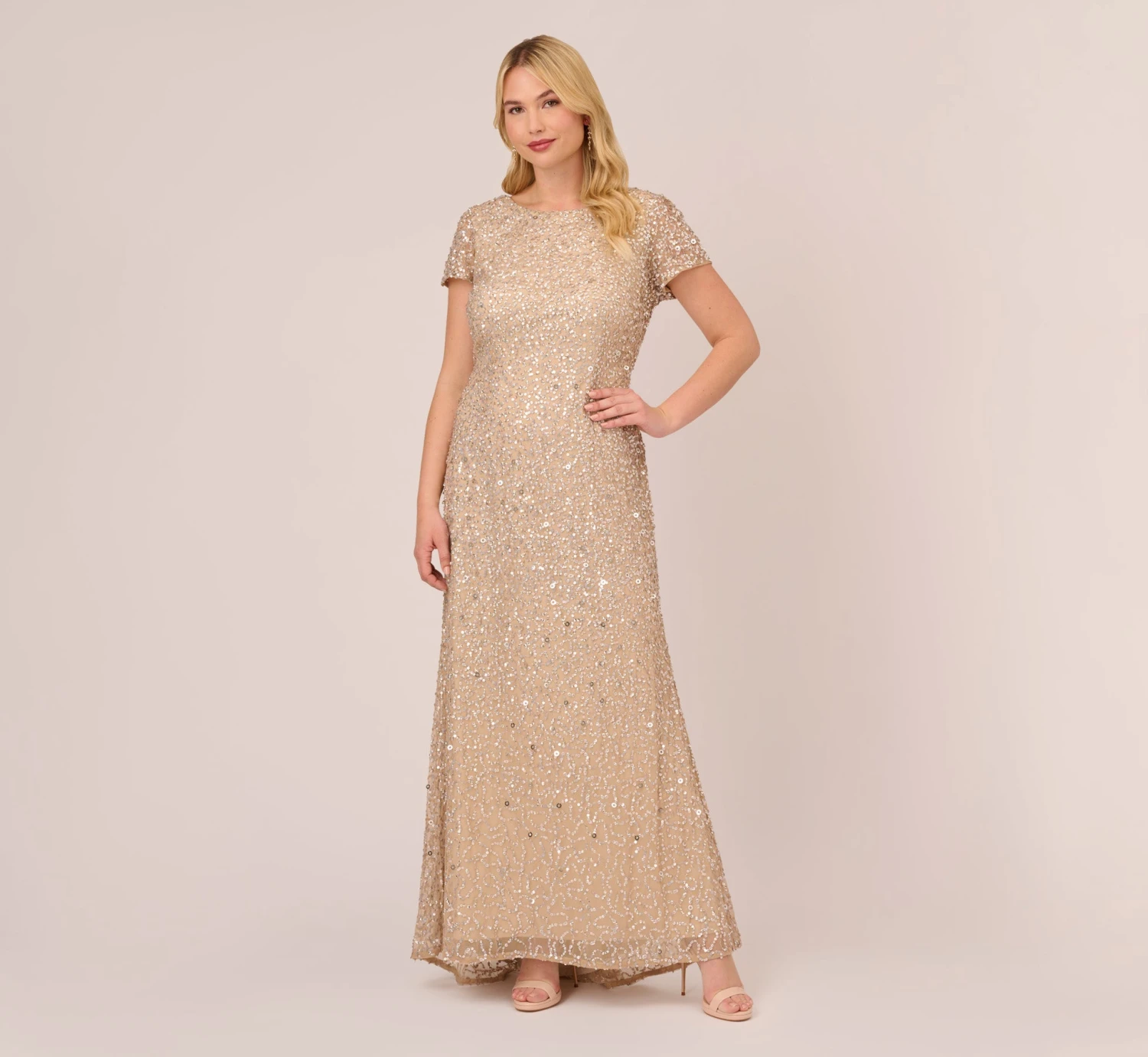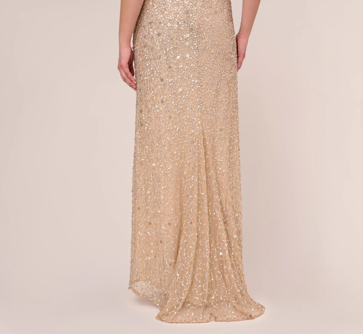 Adrianna Papell Plus Size Scoop Back Sequin Gown In Champagne