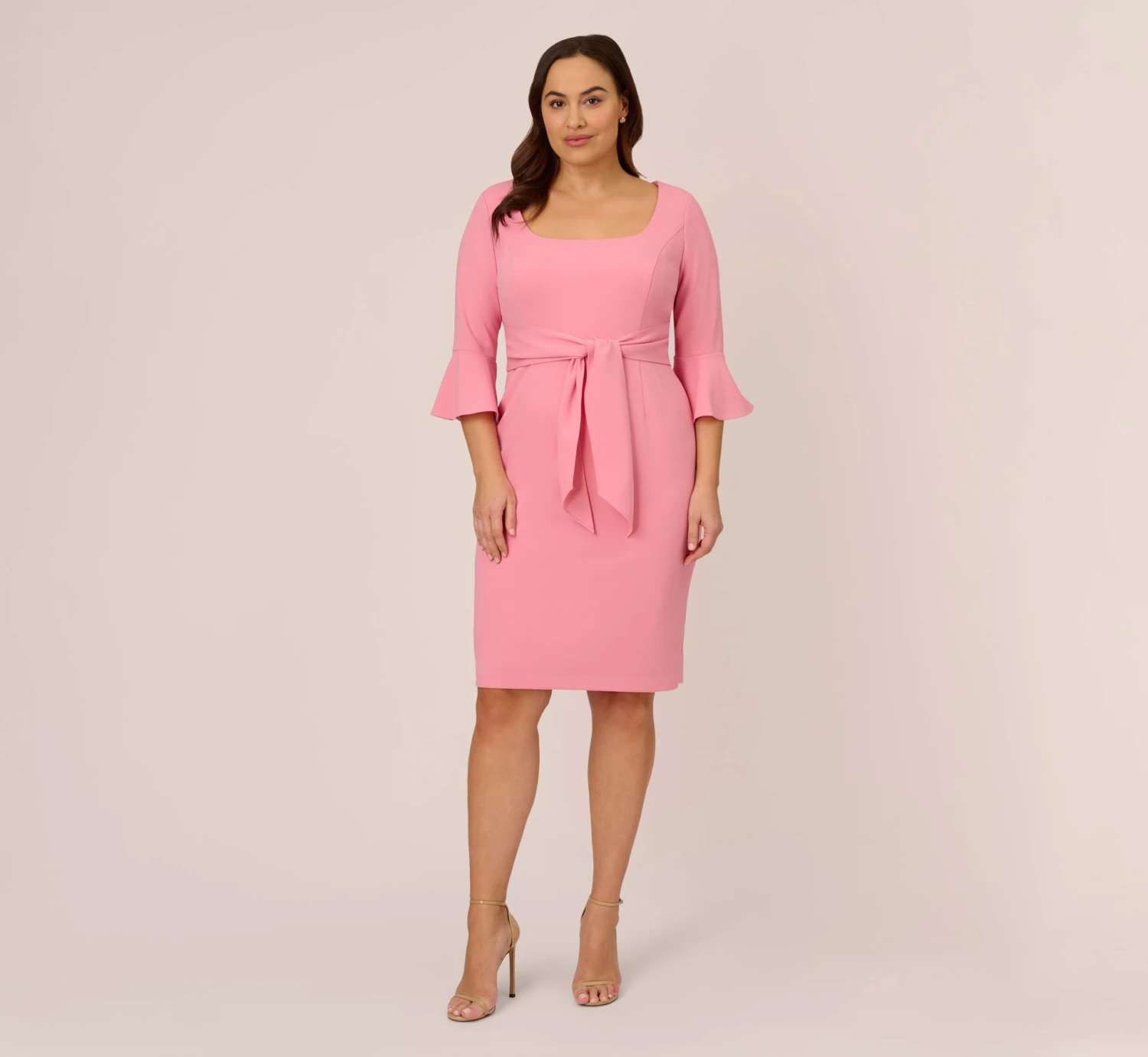 Adrianna Papell Plus Size Stretch Knit Crepe Tie-Front Midi-Length Sheath Dress In Faded Rose