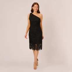 Classic and versatile, our stunning woven satin crepe midi dress is expertly tailored with a playful satin and chiffon ruffled shoulder detail and a high/low mermaid hemline. The square neckline and no waist seam further define this cocktail-style dress. Back zipper with hook and eye closure.