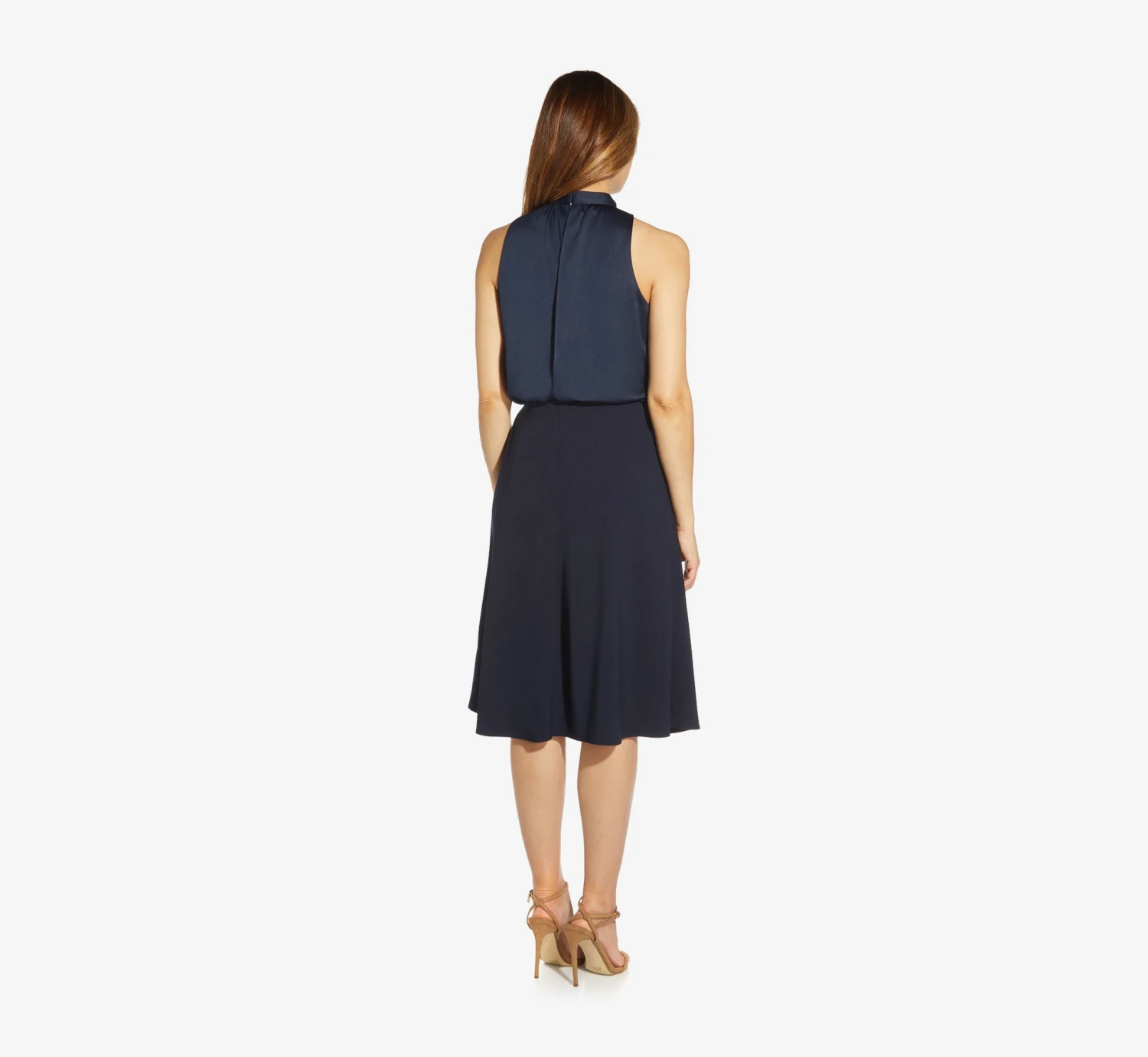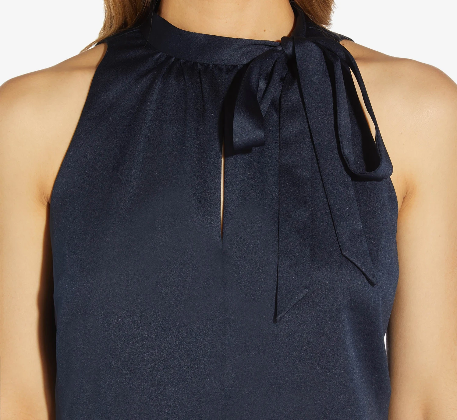 Timeless with a twist: our signature blouson dress, designed to gently streamline the waist and blouse softly over it, is accented?with a sexy front keyhole opening and a self-tie closure at mock neckline. We love the pretty pleats along the waist to give this dress added dimension and swing. Wearable on repeat.