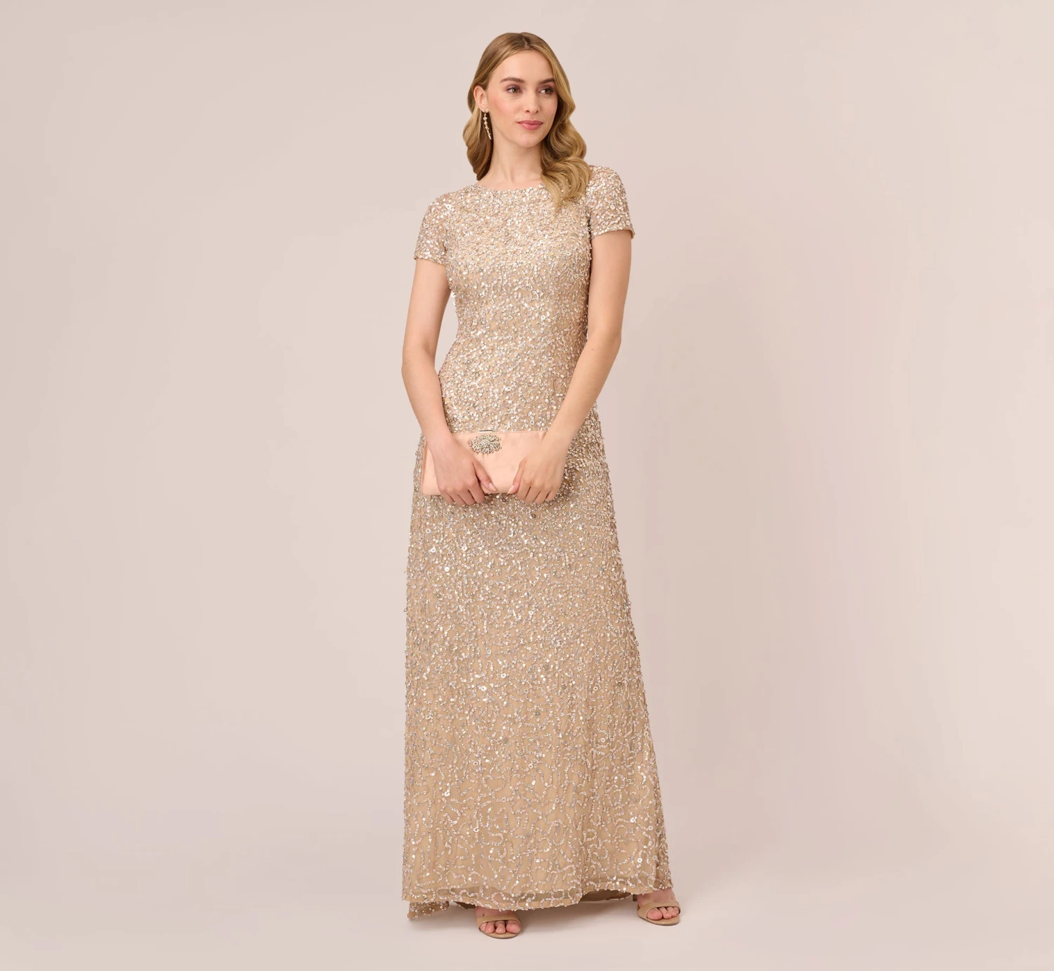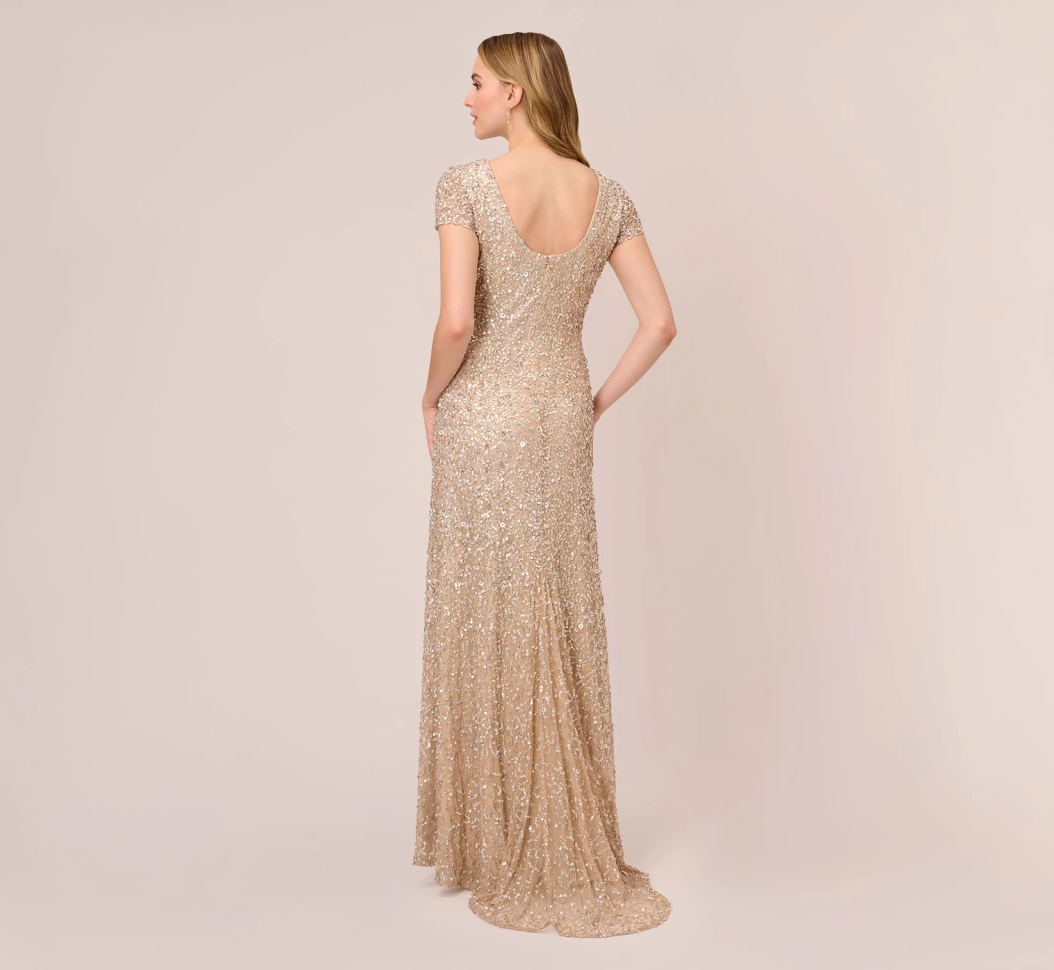 Adrianna Papell Scoop Back Sequin Gown In Champagne