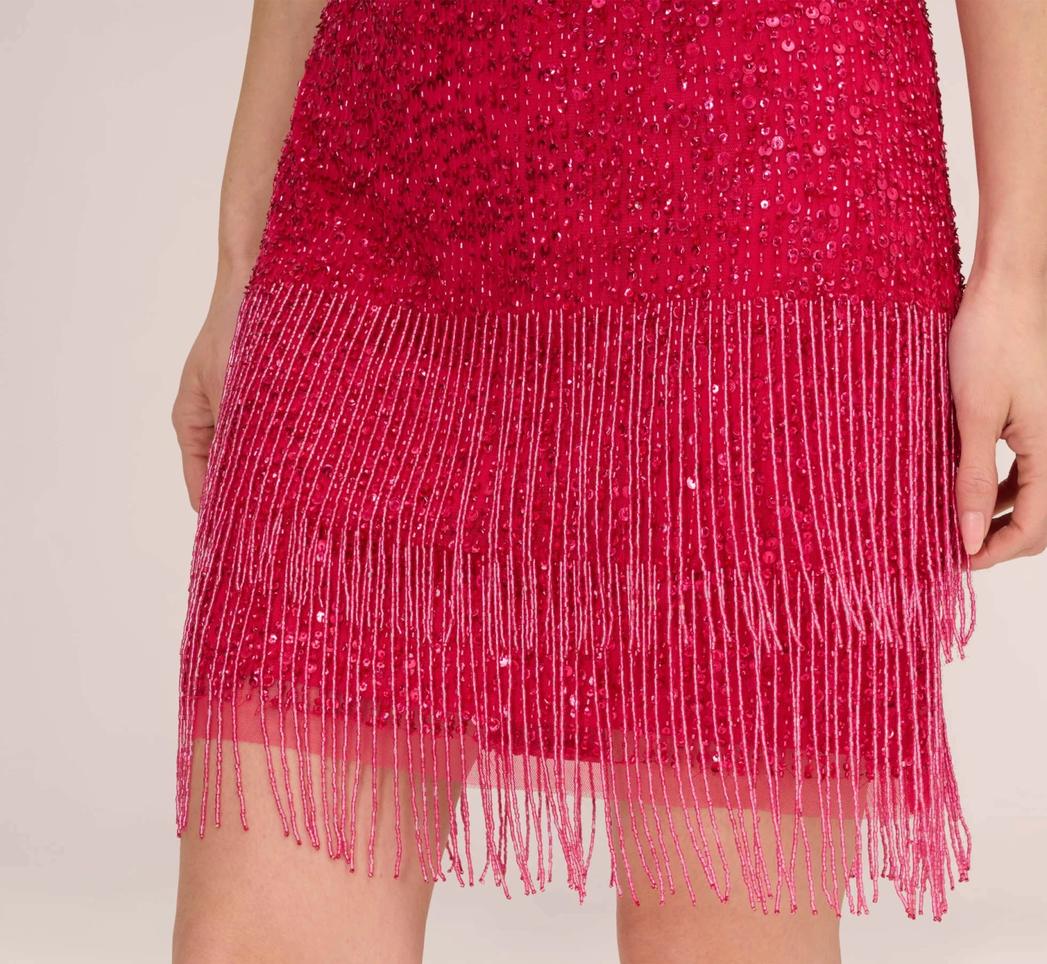 20s-inspired glimmer and fringe in a modern sleeveless silhouette. We love this cocktail dress for all the movement it creates, from the light that reflects off its sequins to a hem that never stops dancing. Its artful design and shimmering statements get invited everywhere.