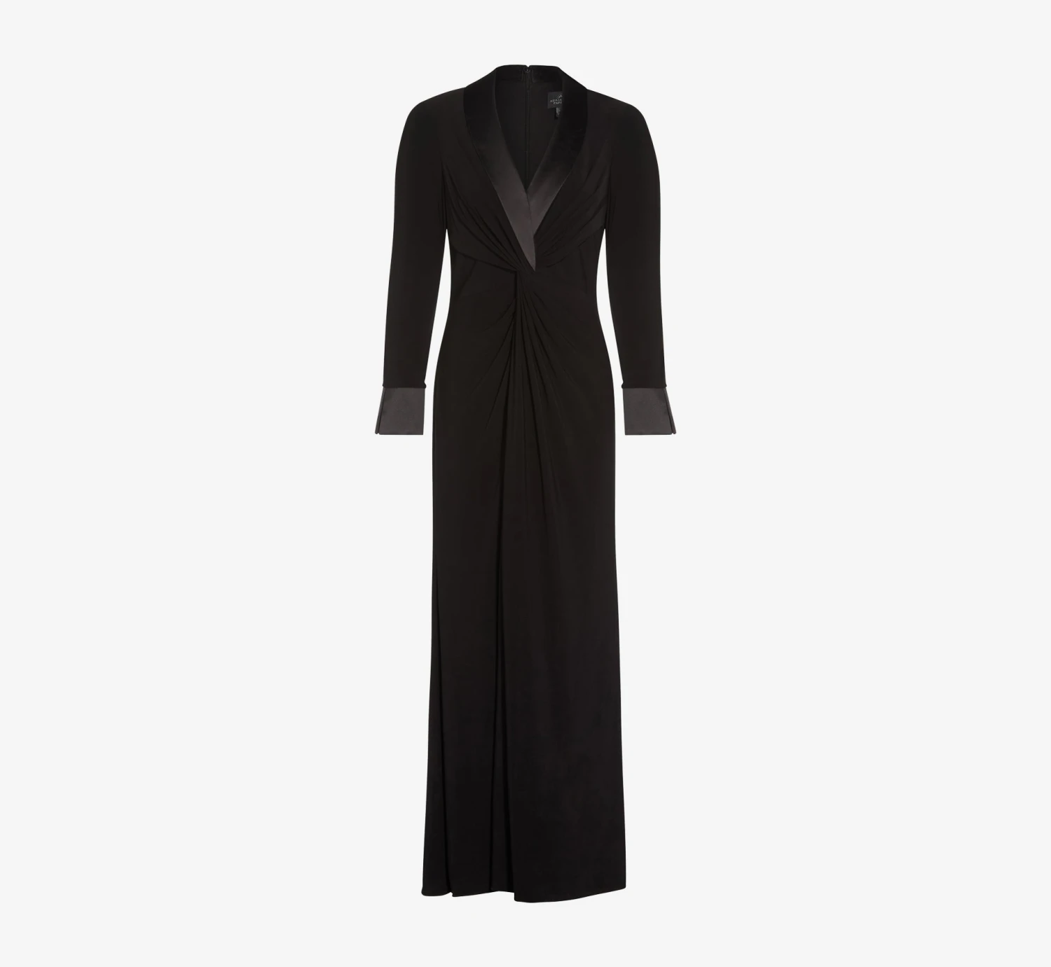 A modern, ultra-chic floor-length gown inspired by the iconic tuxedo dress. We designed ours with elegant long sleeves, in a soft silhouette that skims the figure beautifully. This is a wear-everywhere, wear-forever gown—a go-to for so many evening events.