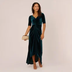From cocktail parties to a day at the office, this velvet dress is ready. This midi dress features a boat neckline, fitted bodice, and three quarter sleeves. A self-tie front with gathered details accentuates the waist and is adjustable to the figure. Ths sheath dress is crafted with a sweet velvet fabric that has some stretch. Styled for day with neutral heels or for evening with metallic accessories, this sheath dress is a charming look.