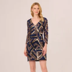Adrianna Papell Embroidered Sheath Dress In Midnight Multi Nude