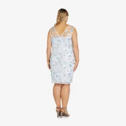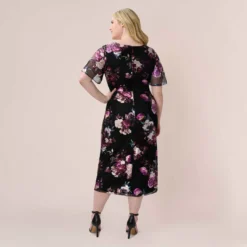 Adrianna Papell Plus Size Foiled Floral-Print Mesh Midi-Length Cocktail Dress In Black Multi
