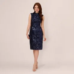 Adrianna Papell Sequin Sheath Dress With Flared Sleeves In Gold
