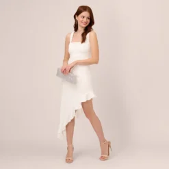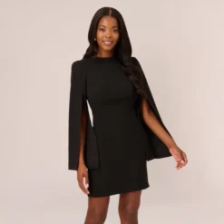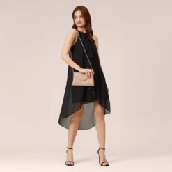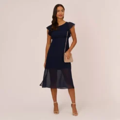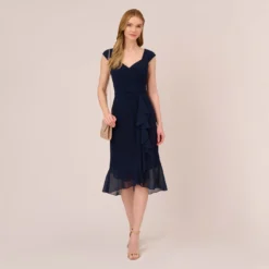 Adrianna Papell Chiffon And Jersey Flounce Draped Dress With Pleated Details In Midnight