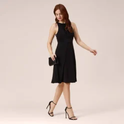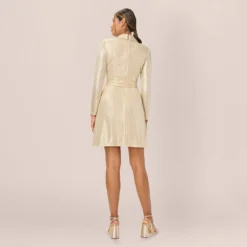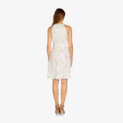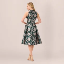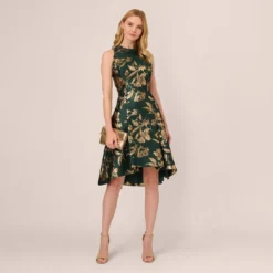 Adrianna Papell Metallic Floral Jacquard Ruffled Fit And Flare Short Day Dress In Hunter Multi
