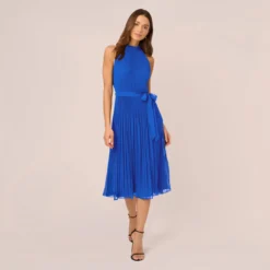 Adrianna Papell Plus Size Chiffon And Jersey Flounce Draped Dress With Pleated Details In Midnight