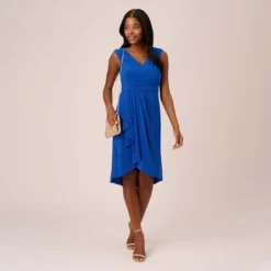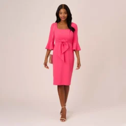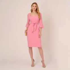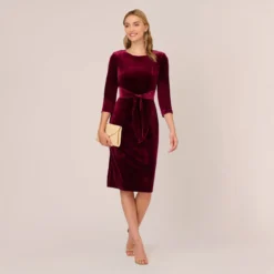 Adrianna Papell Stretch Knit Crepe Midi-Length Fit-And-Flare Dress With Lace Trim In Cherry Bliss