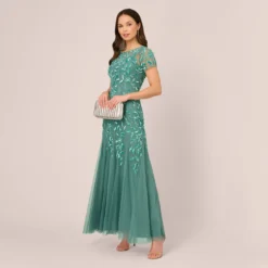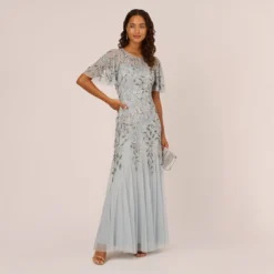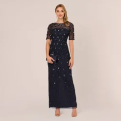 Adrianna Papell Metallic Floral Print Jacquard Gown With Off The Shoulder Neckline In Peri Multi