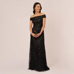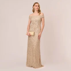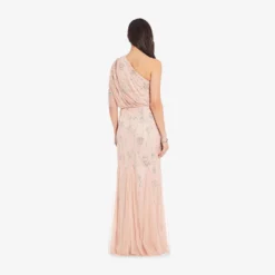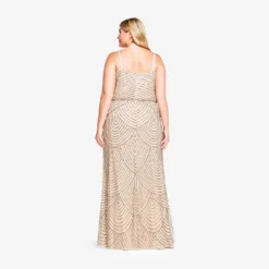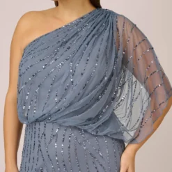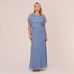 Adrianna Papell Plus Size Hand-Beaded Blouson Long Gown With Flutter Sleeves In French Blue