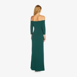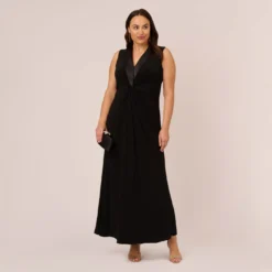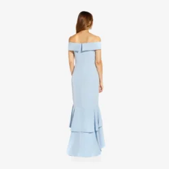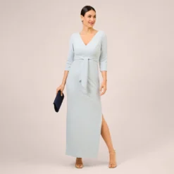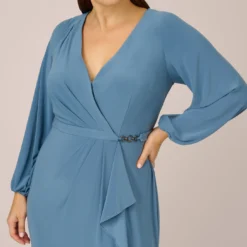 Adrianna Papell Plus Size Jersey Faux Wrap Gown With Cascading Ruffle And Slit In Bluebird