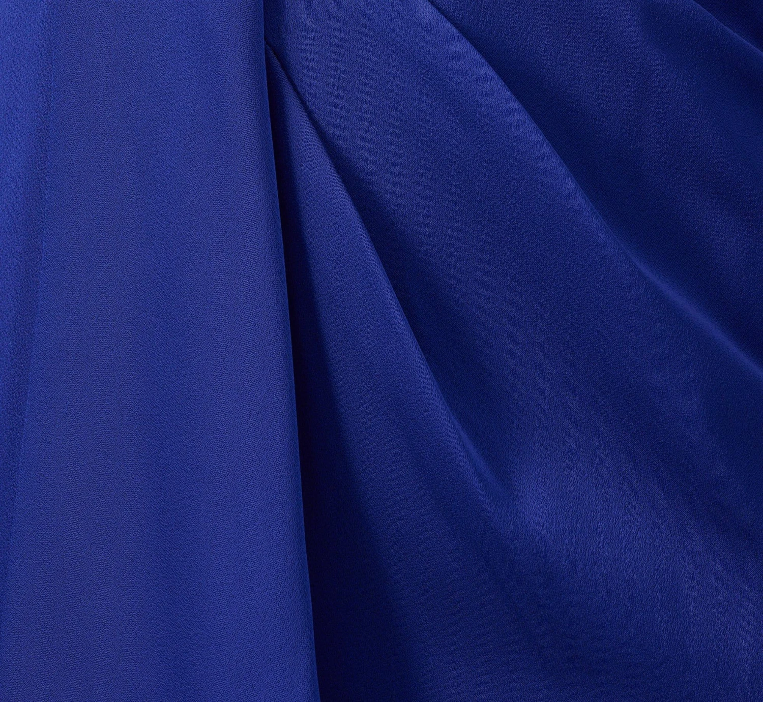 Ready to rule the world. A silky satin sheath dress, accented with a chic crepe back and striking, artful cape.