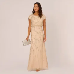 Adrianna Papell Floral Print Off The Shoulder Metallic Crinkled Mesh Long Gown In Aqua Multi