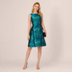 Adrianna Papell Embroidered Midi Length Sleeveless Knit Fit And Flare Dress In Blue Multi
