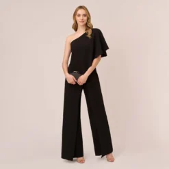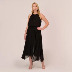 Adrianna Papell Plus Size Colorblock Matte Crepe Cropped Jumpsuit With Skirt Overlay In Black Ivory