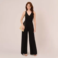 Adrianna Papell Long Sleeve Crepe Dress With Tuxedo Collar In Black
