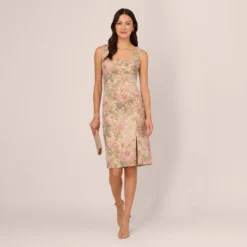 Striking both coming and going, this column dress is crafted from a buttery-soft woven stretch satin charmeuse in a watercolor pattern and features a flattering cowl neckline. This bias-cut dress skims the body. The beaded straps and low back add a sense of sexiness. Sleek zipper with hook-and-eye closure. Amp up your look at prom, wedding celebrations and black-tie galas.